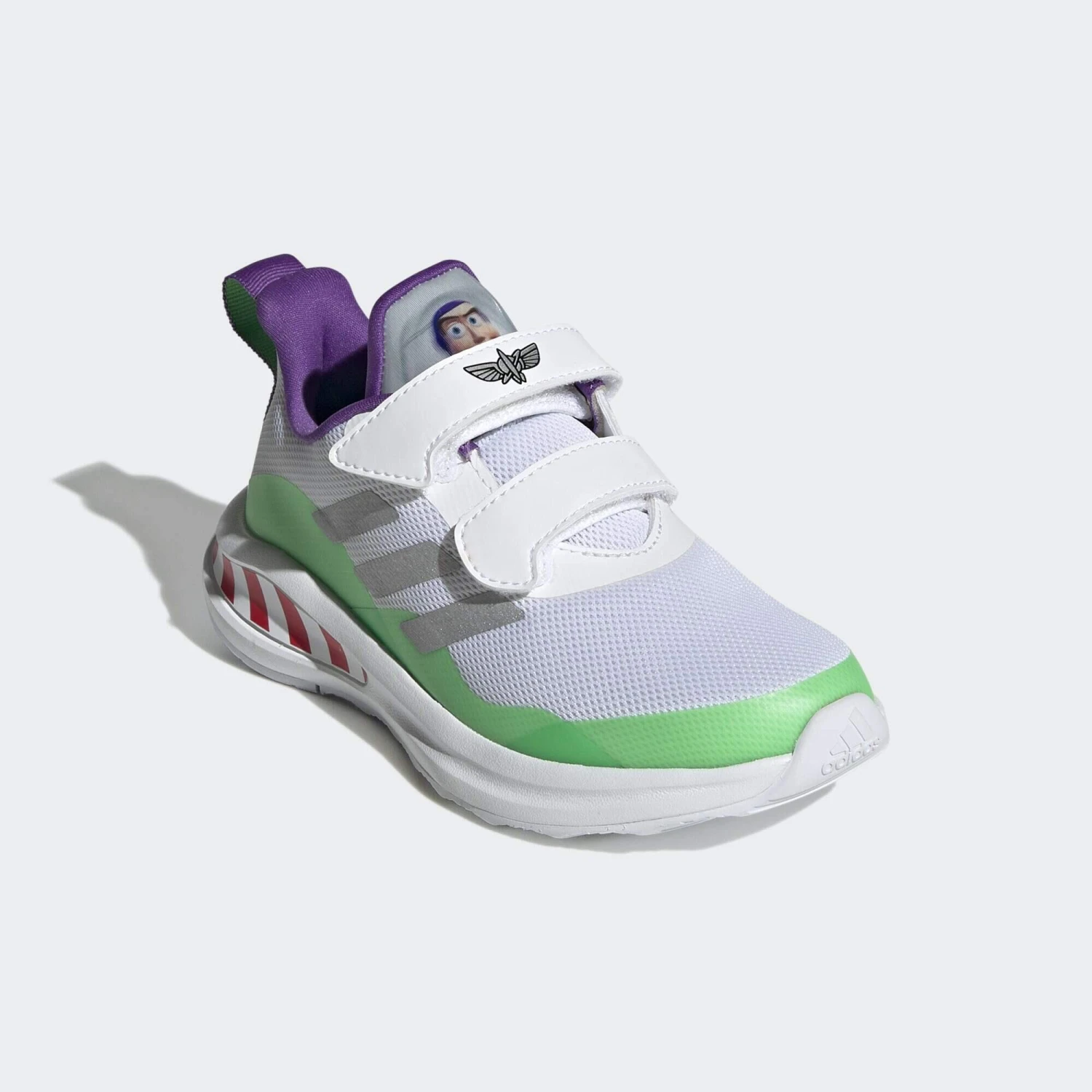 Your young explorer’s favourite astronaut can go wherever they do in these kids’ adidas running shoes. They’re designed for elevated comfort with a pillow-soft Cloudfoam midsole, and they have dual hook-and-loop straps for a snug fit. Graphics on the upper are inspired by Disney Pixar’s Buzz Lightyear, so they’re ready for adventure.Made with a series of recycled materials, and at least 50% recycled content, this product represents just one of adidas’ solutions to help end plastic waste.