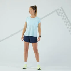Our design teams developed this ultra-lightweight and breathable women’s running T-shirt for your running outings in hot weather.Seeking an ultra-lightweight product? Thanks to its very lightweight component and laser perforations for eliminating perspiration, this women’s running T-shirt is ideal for your summer runs.